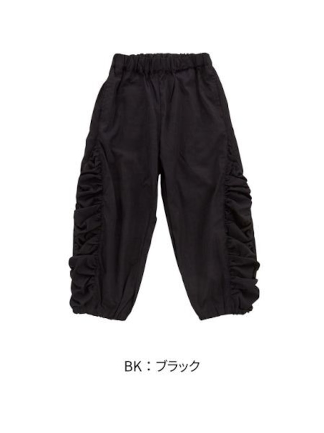 エレガントでフェミニンなサイドギャザーディテールが印象的なフル丈パンツ シンプルながらも華やかさをプラスし、上品なスタイルを演出 軽く快適なポリエステルナイロン素材を使用 フル丈で、トップスとのコーディネートも自在に楽しめます 素材 本体:ポリエステル58% , ナイロン42%
