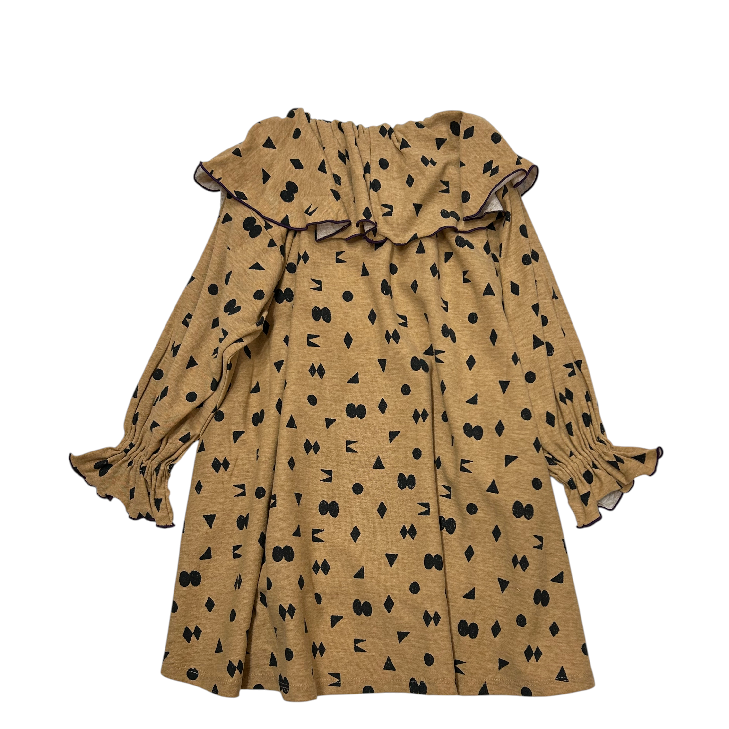 ボリュームたっぷりのフリルカラーが着映えする、総柄ワンピース