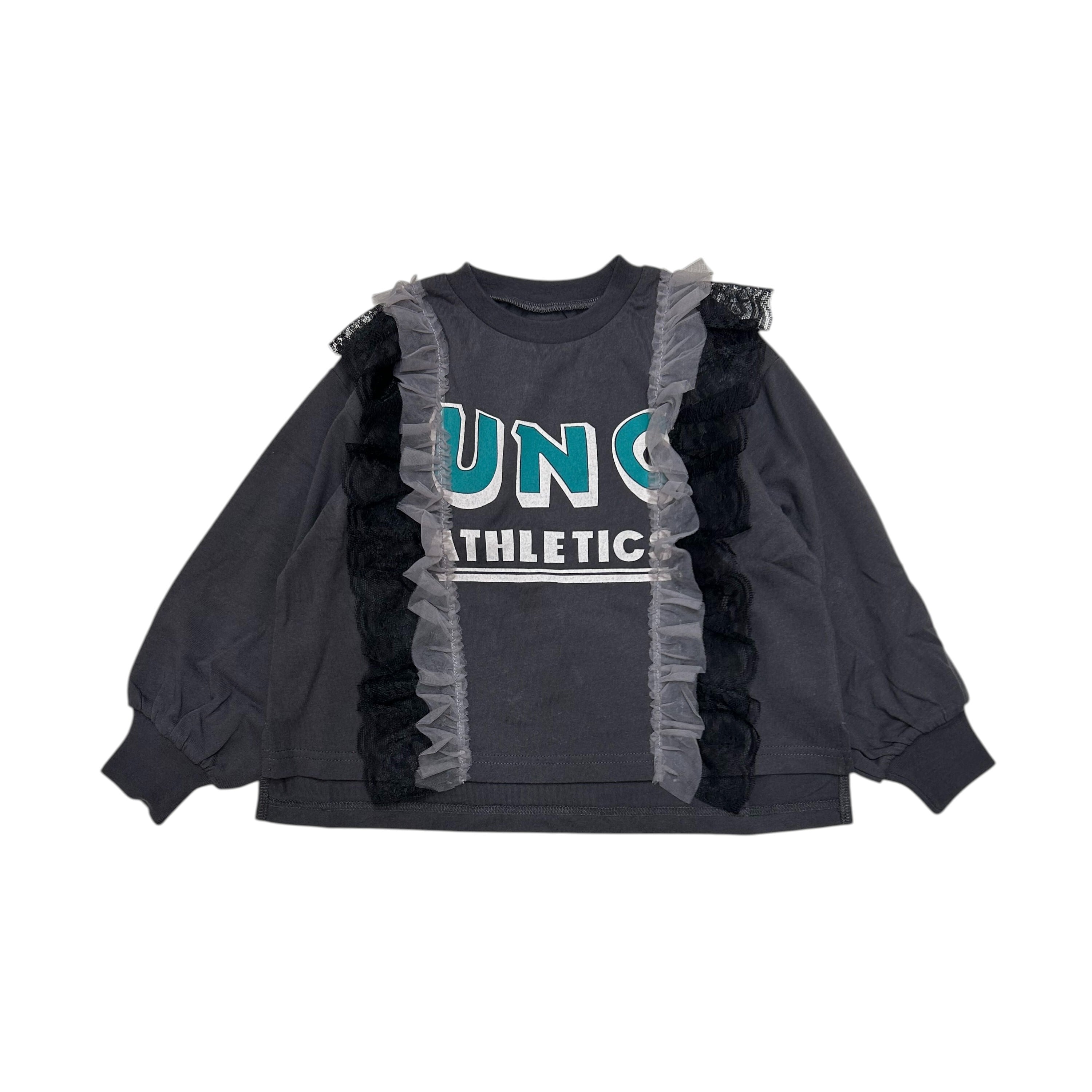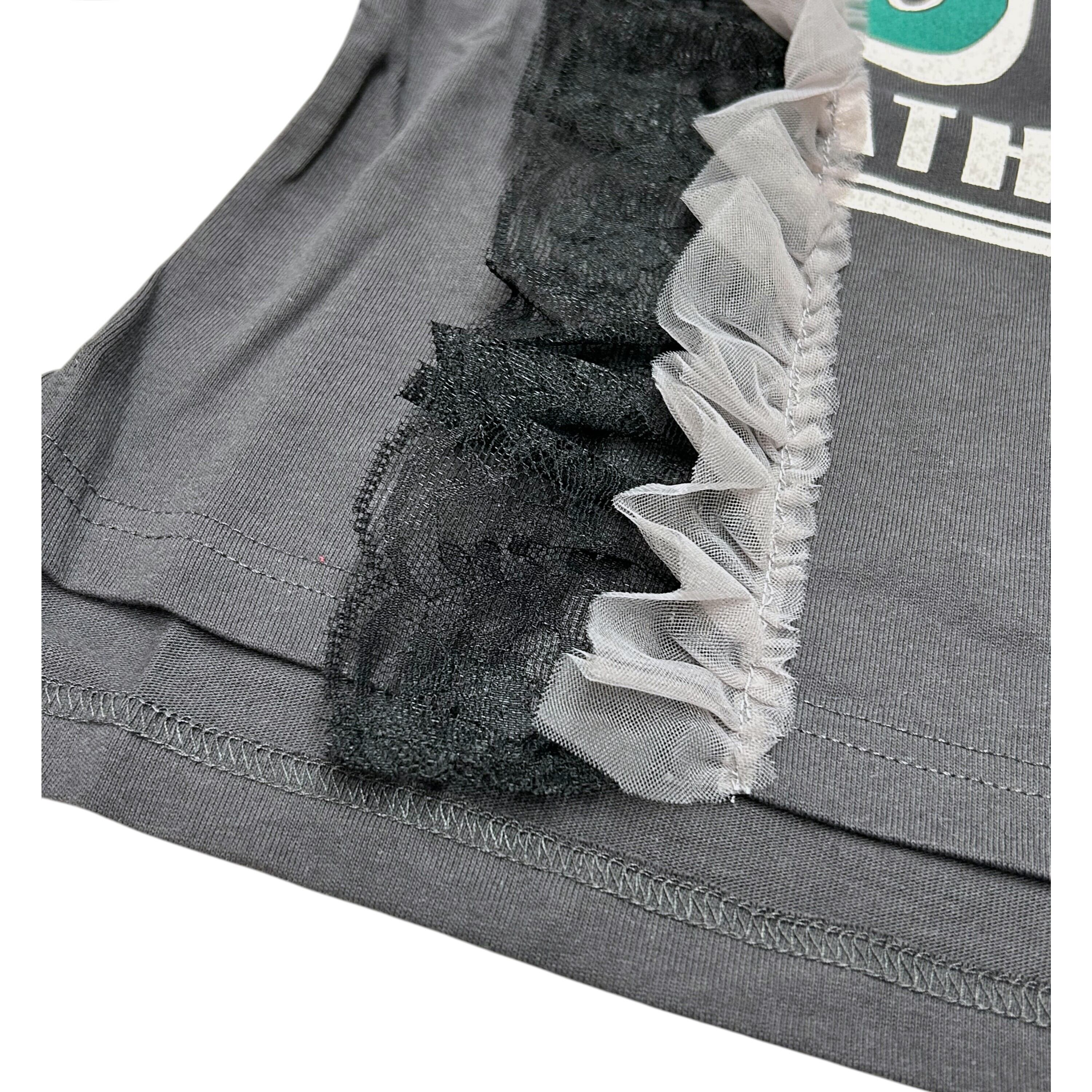 ロゴTシャツにソフトチュールとレースを重ねた、リメイクライクなTシャツ