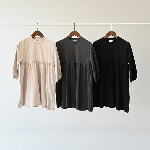 ギャザーワンピース チャコールグレー M-XL