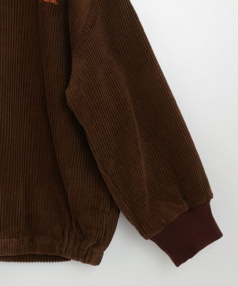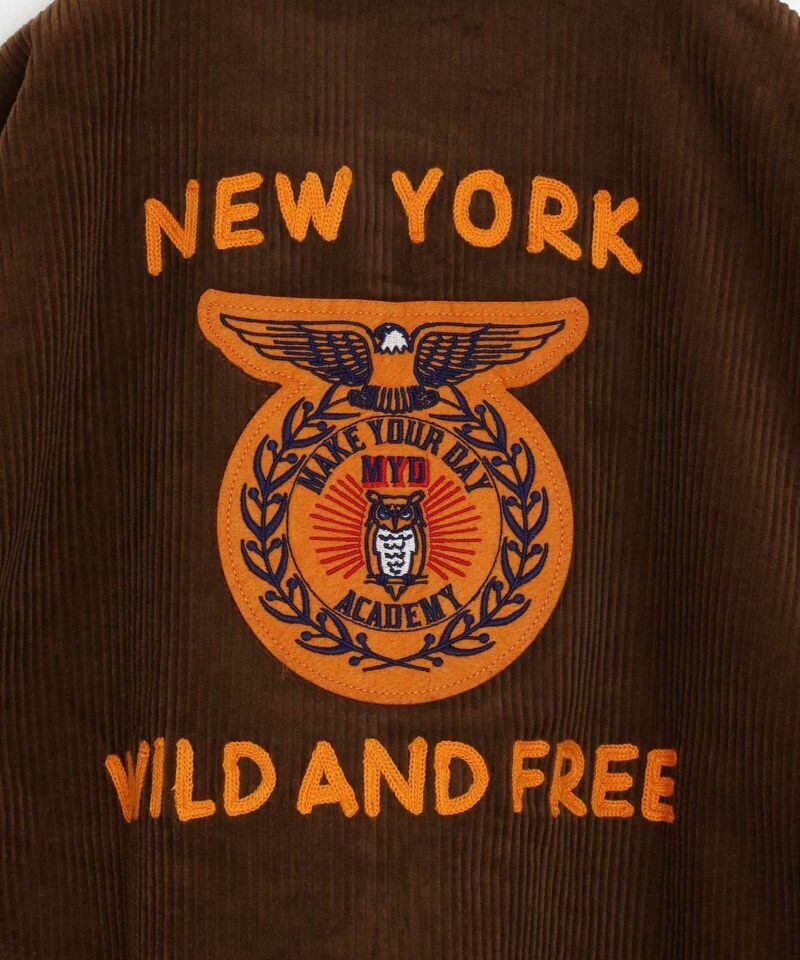 左胸や背中部分に刺繍や大きなワッペンを施し、カジュアルど真ん中のデザイン。