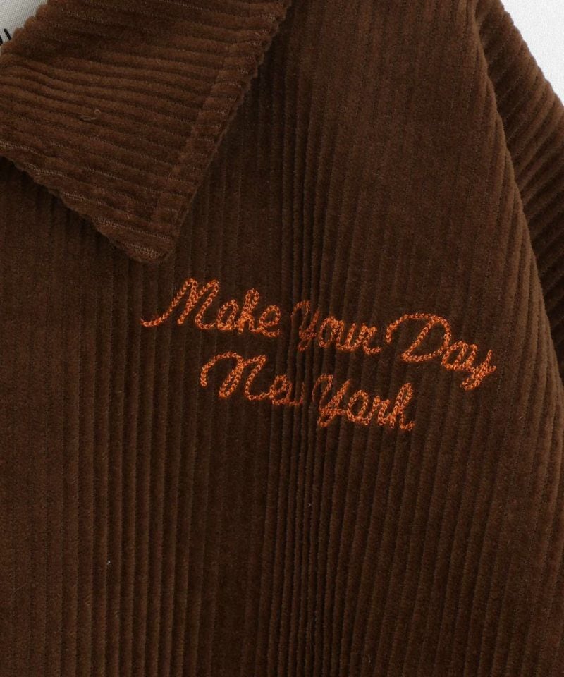 左胸や背中部分に刺繍や大きなワッペンを施し、カジュアルど真ん中のデザイン。