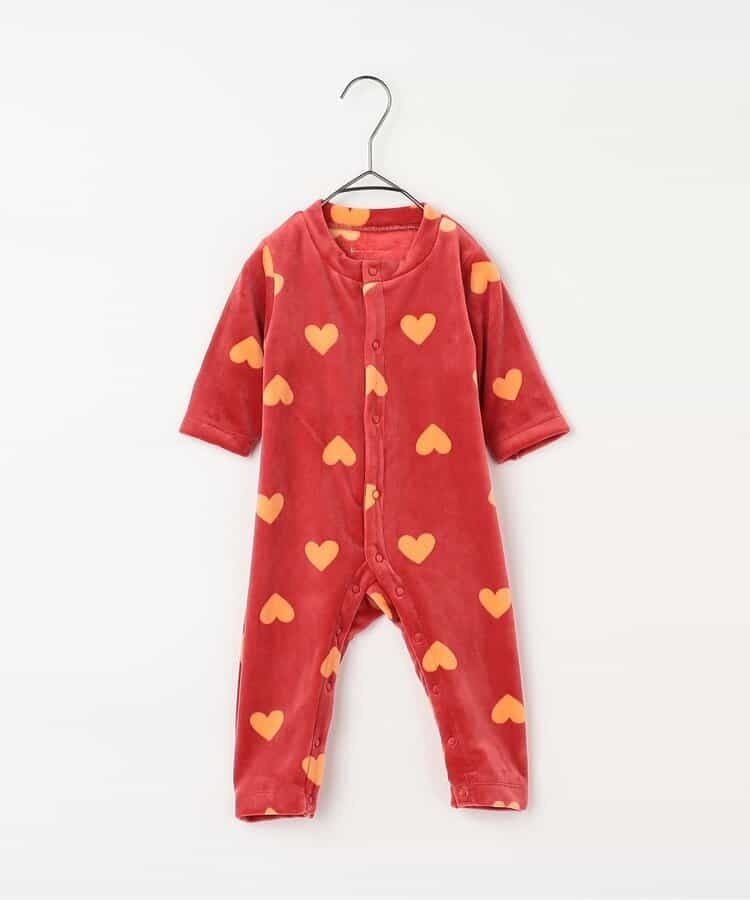 ベロアタッチのメルティ起毛フリースぬくぬくカバーオール レッド