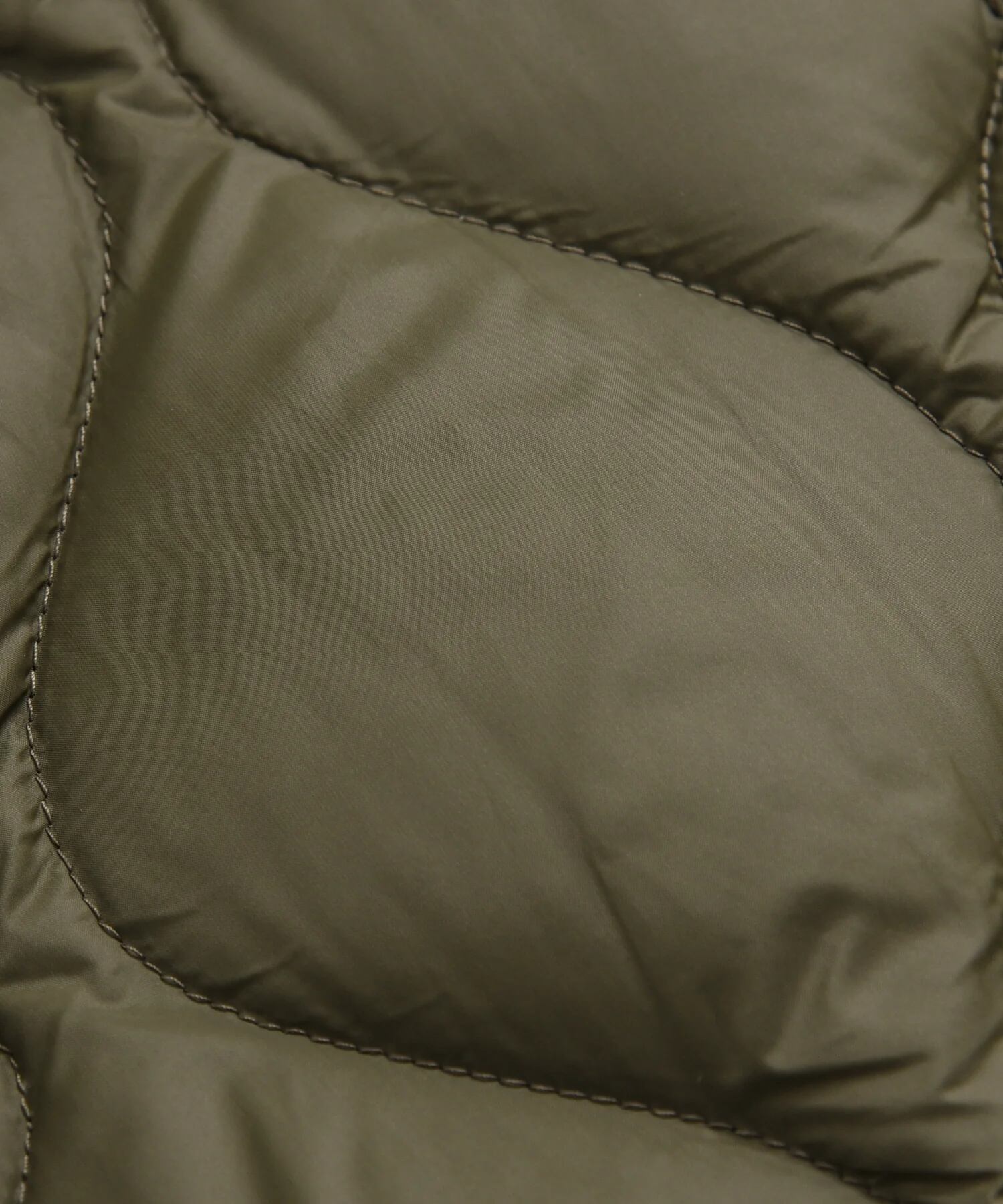 高密度ナイロン生地に、800FPの上質ダウンを使用しヘチマキルトで仕上げ軽くて柔らかな質感を再現しました。