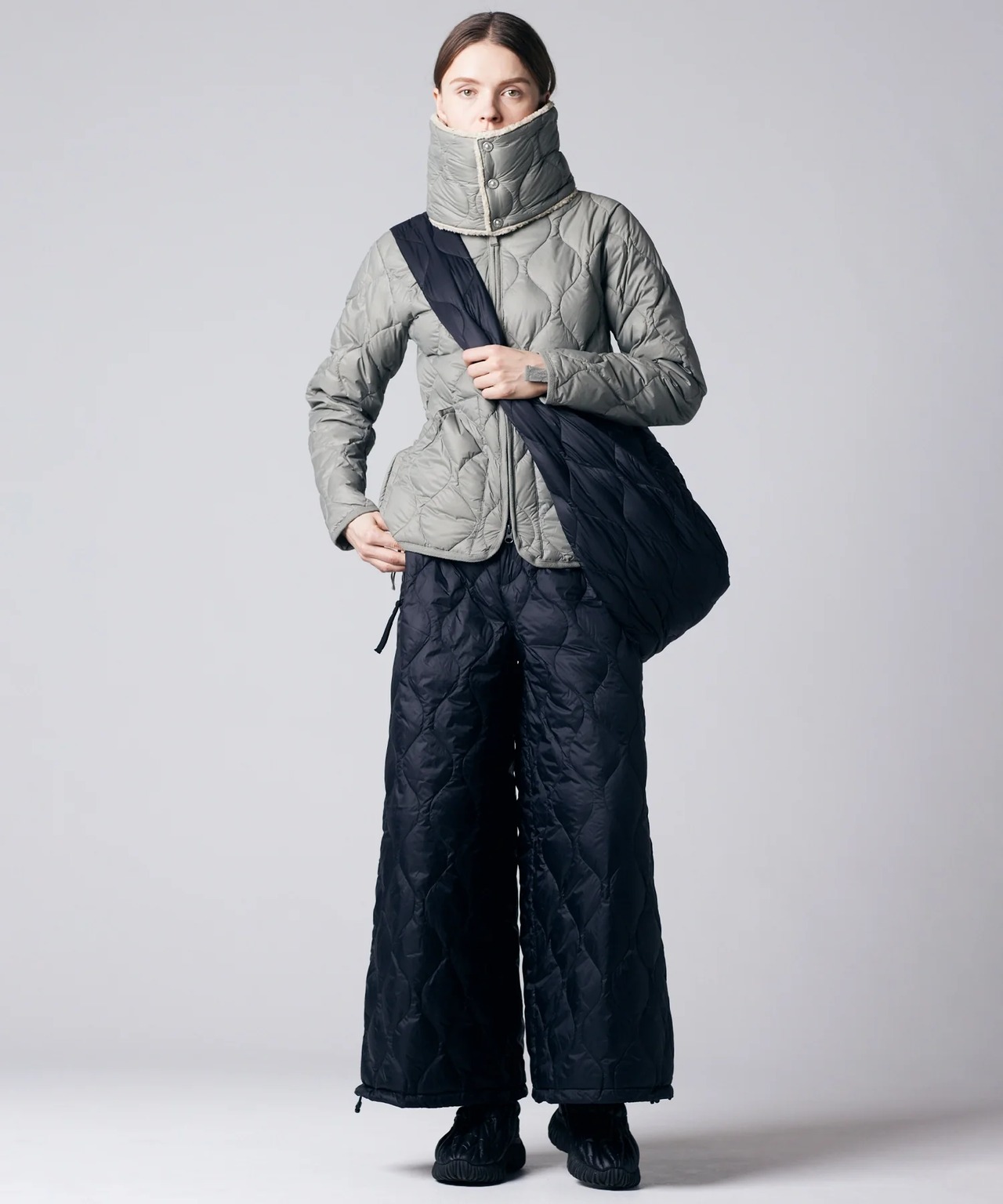 高密度ナイロン生地に、800FPの上質ダウンを使用しヘチマキルトで仕上げ軽くて柔らかな質感を再現しました。