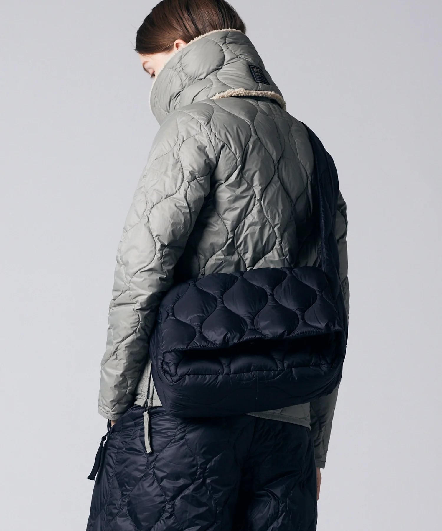 (A4サイズ、普段使いしやすいサイズ) 高密度ナイロン生地に、800FPの上質ダウンを使用しヘチマキルトで仕上げ軽くて柔らかな質感を再現しました。