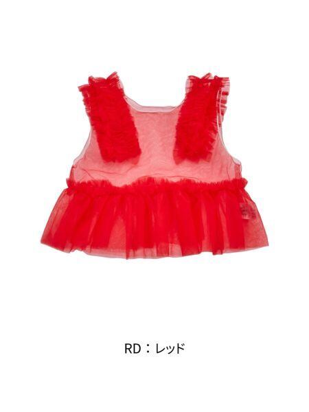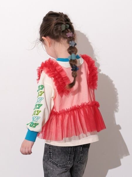 ふんわりボリュームのチュールフリルが顔まわりを華やかに演出