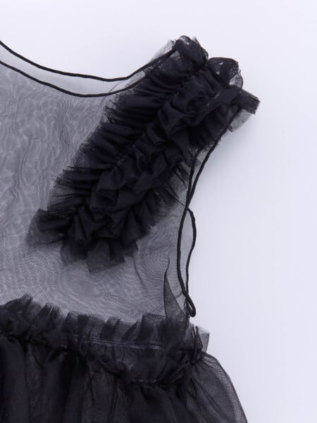 ボリュームフリルがキュートなチュールのベスト