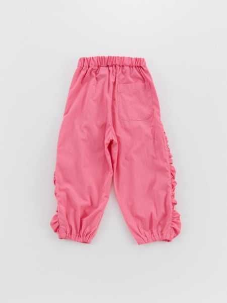 エレガントでフェミニンなサイドギャザーディテールが印象的なフル丈パンツ