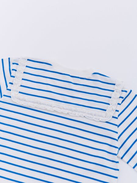 フリル付きセーラー衿がポイントの、ボーダーTシャツ