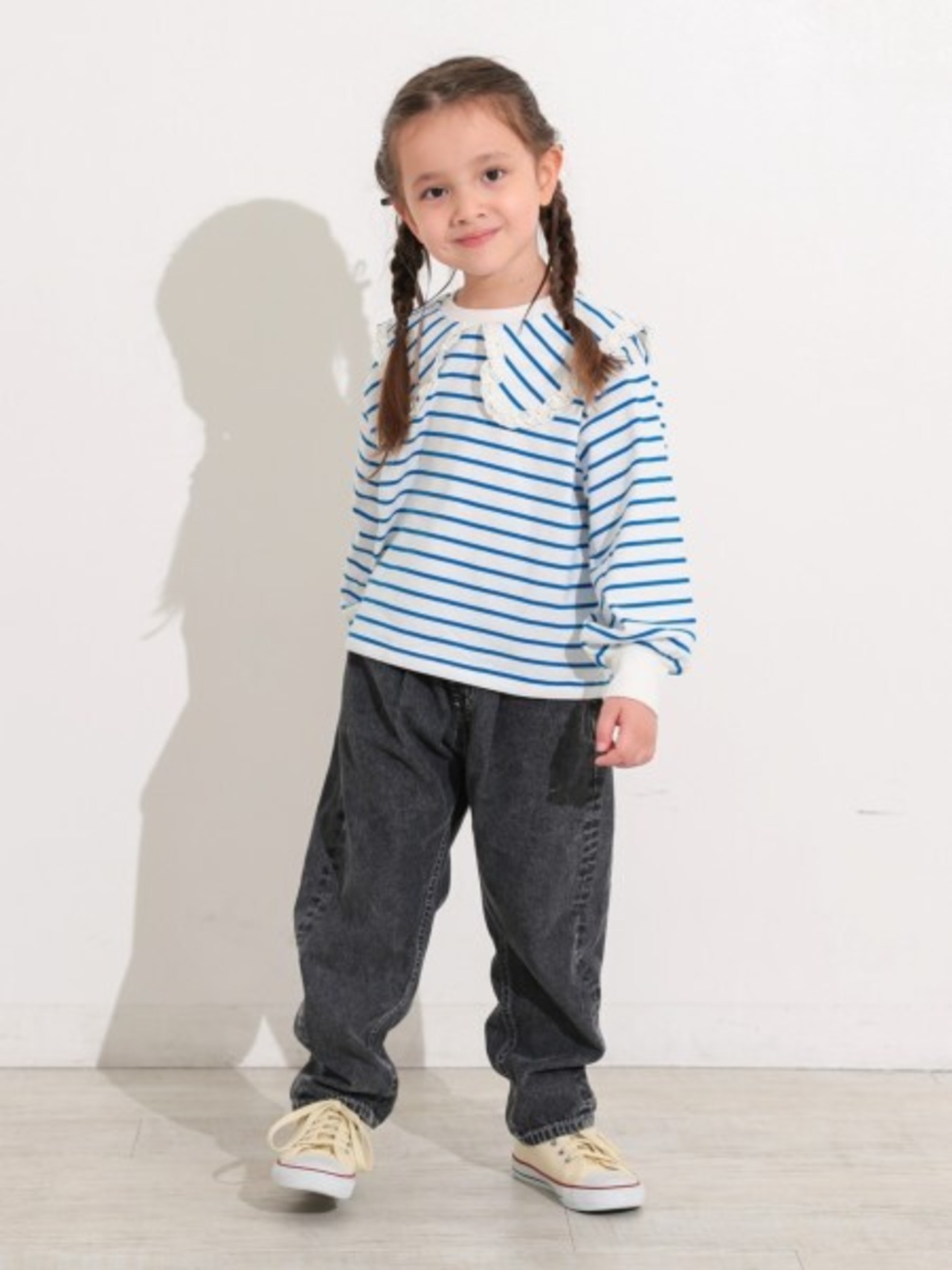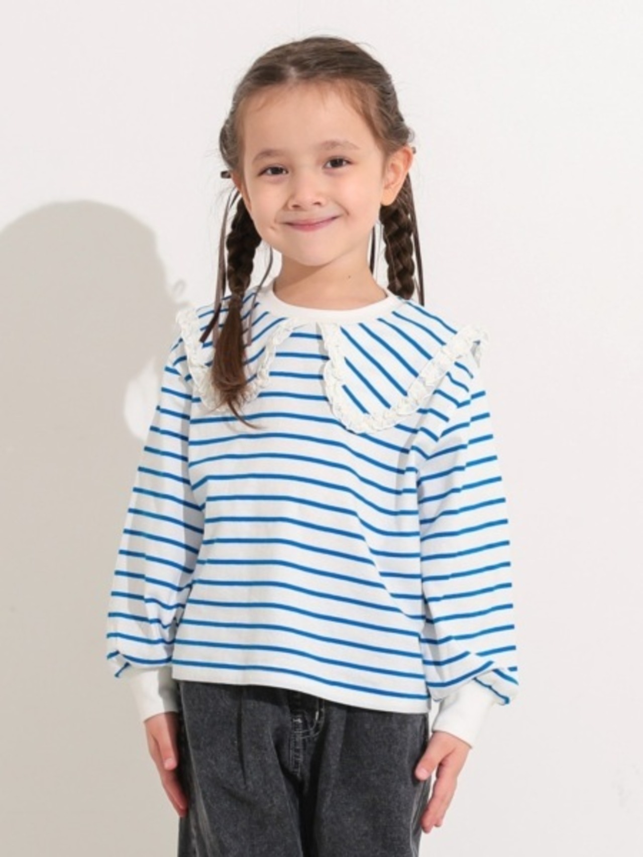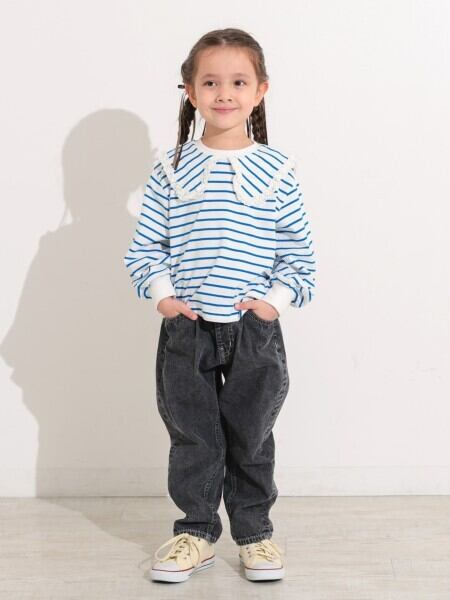 セーラーカラーボーダーロンT ブルー 150-160
