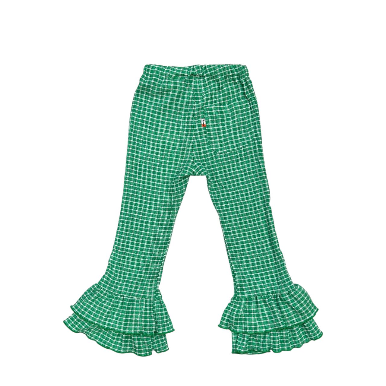 足口にあしらったボリュームフリルが着映えする、フル丈ジャガードフリルパンツ