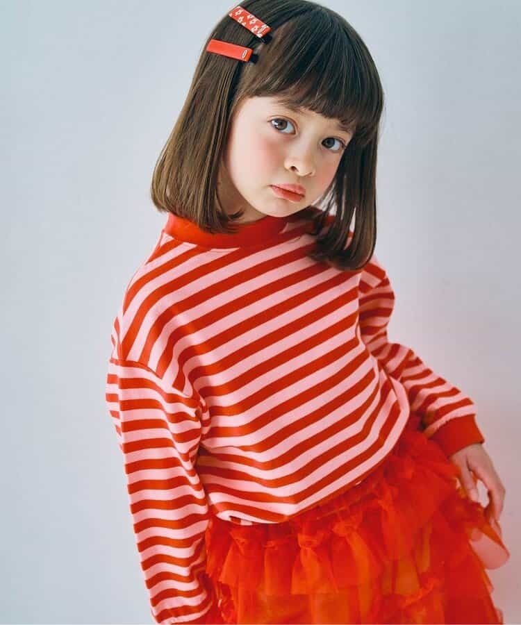 p.premier 先染めボーダー長袖Tシャツ ピンク