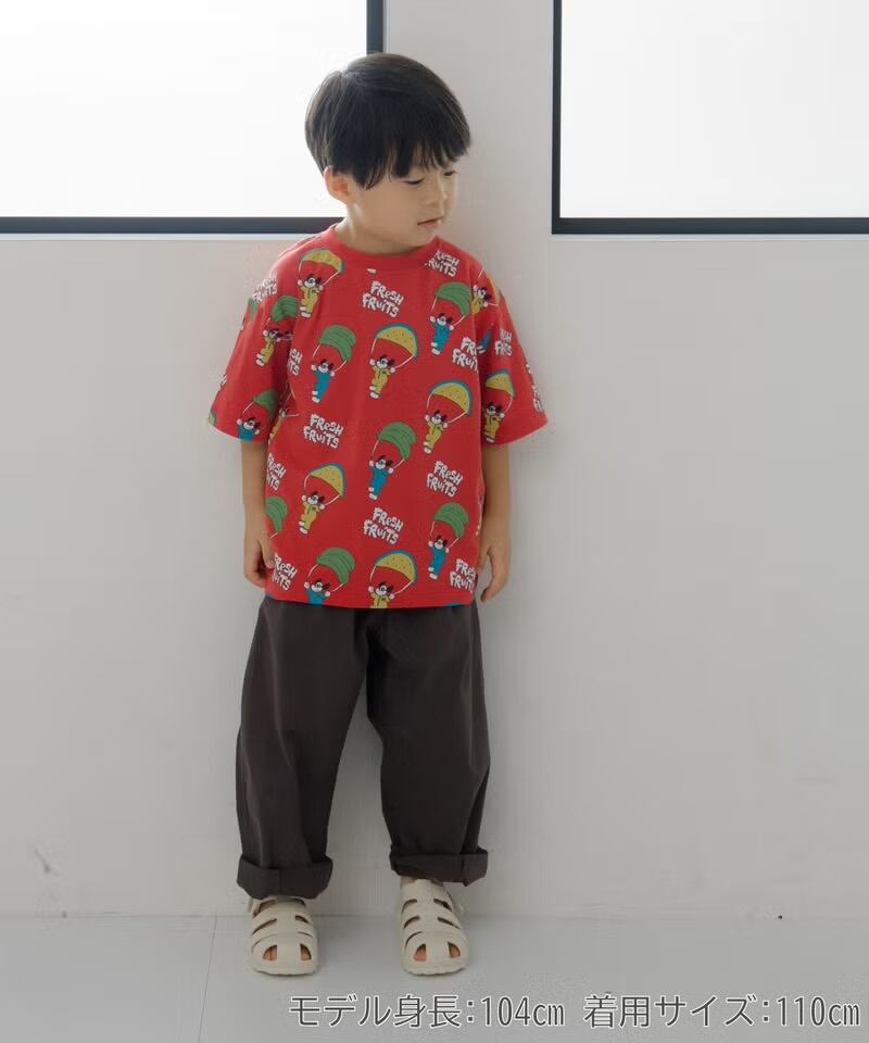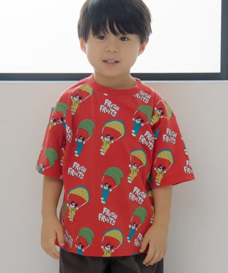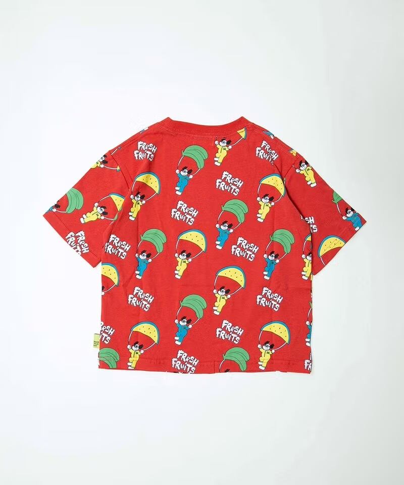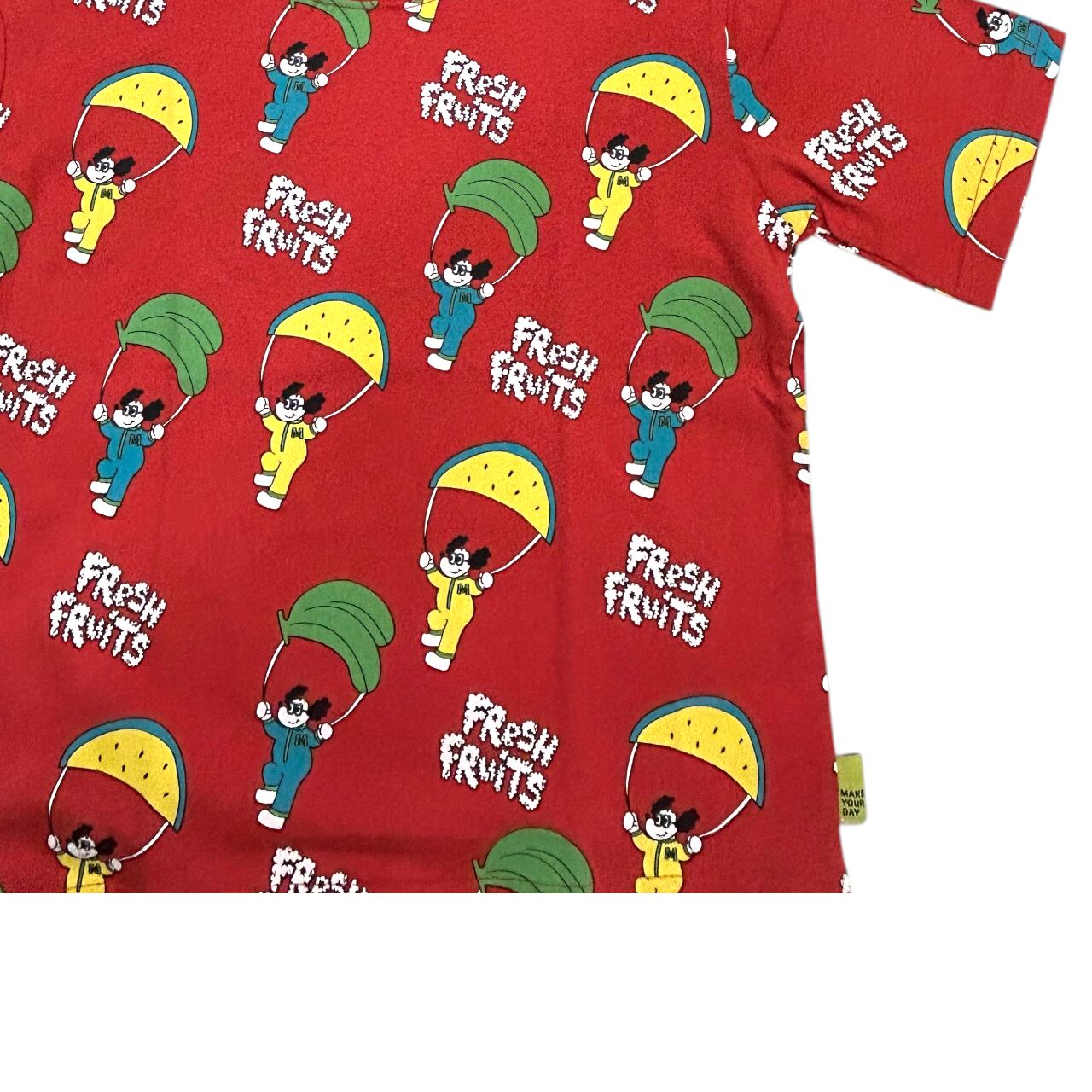 フルーツパラシュート総柄半袖Tシャツ レッド