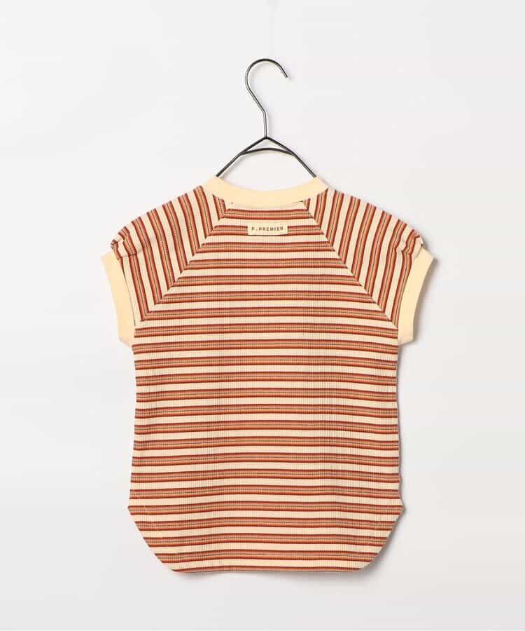 p.premier 先染めボーダーワッフルトップス アイボリー