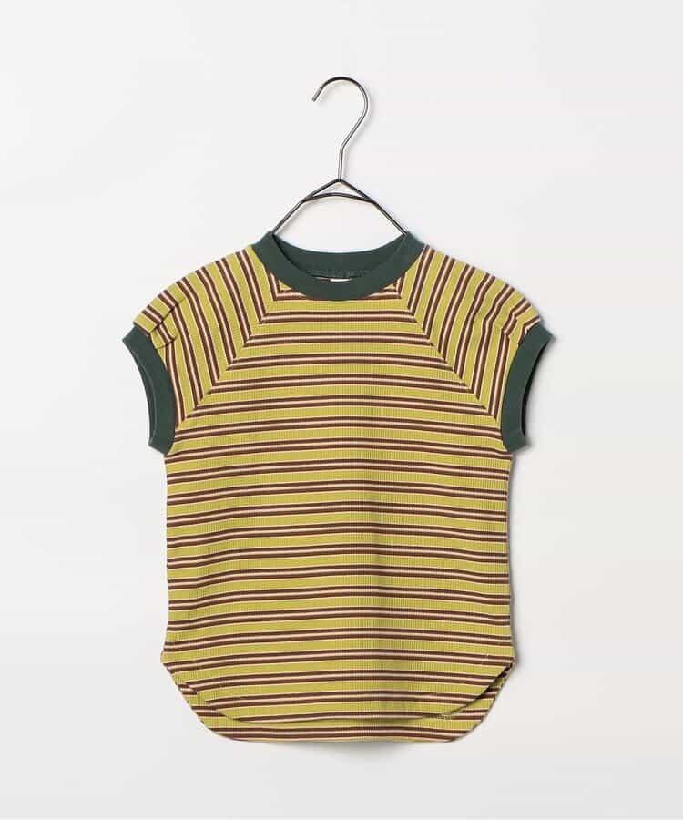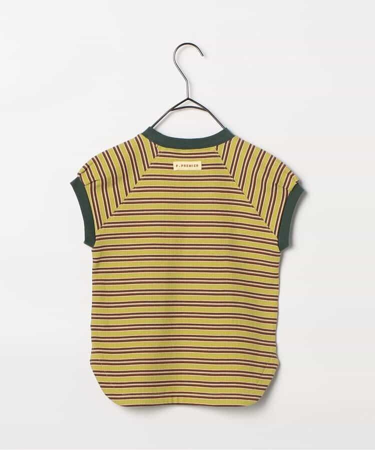 p.premier 先染めボーダーワッフルトップス グリーン