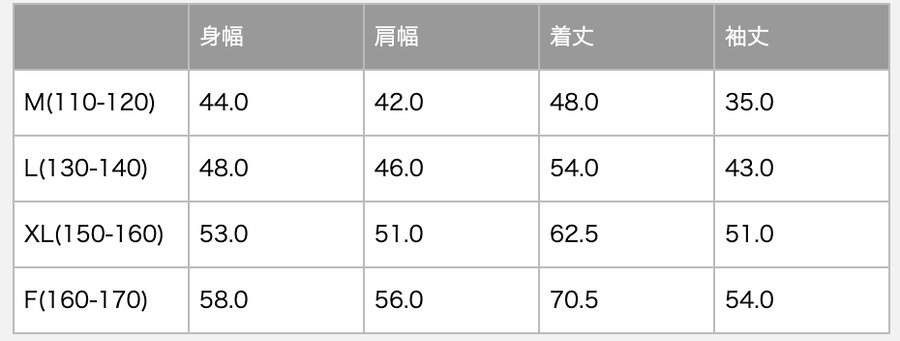 サイズ*M(110-120)・L(130-140)・XL(150-160)