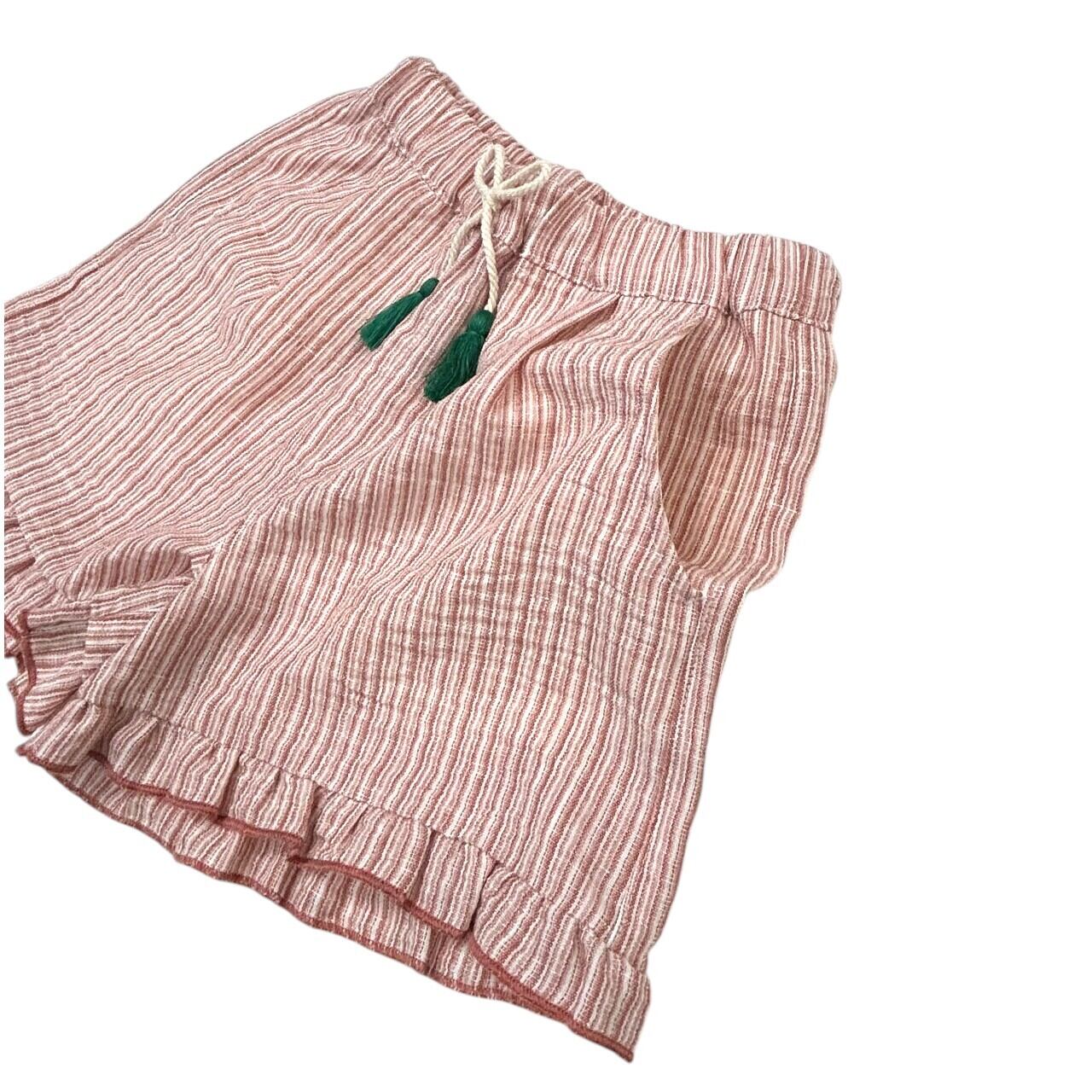紐先にあしらった、タッセルのカラーリングがアクセントになるフリルショートパンツ
