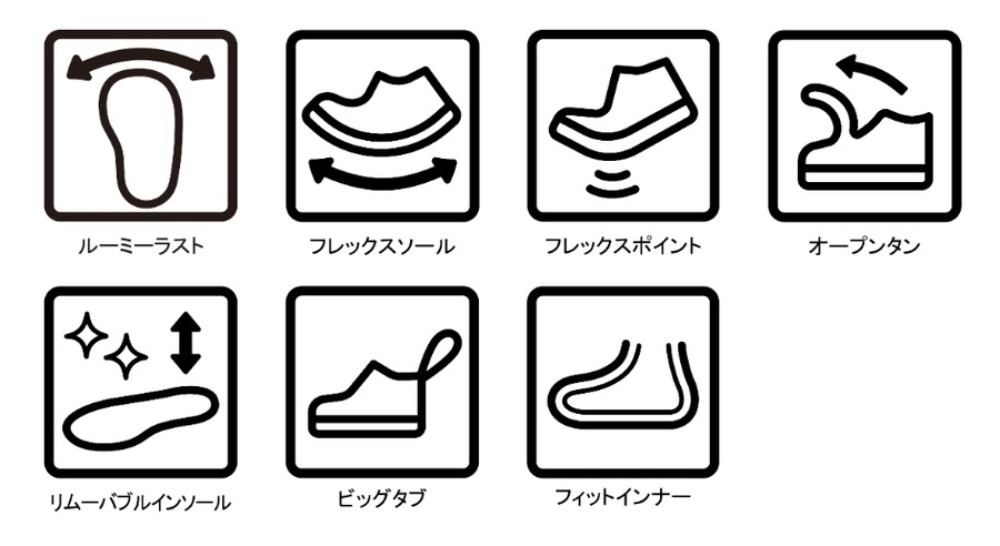 しなやかなラバーを採用し、足の曲がる位置でしっかり屈曲、足に優しく快適な歩行をサポートします。