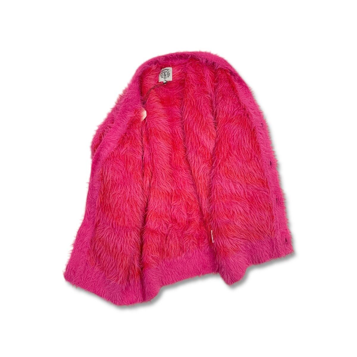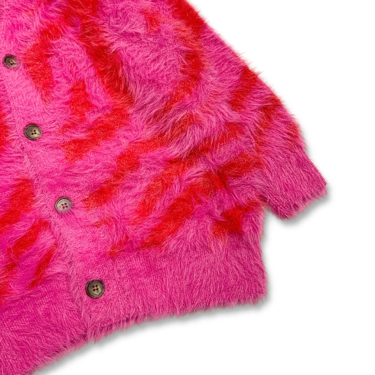 ポップな色合わせが可愛い、毛足の長いふわふわの糸を使用したゼブラ柄のニットカーディガン。 お尻が隠れる着丈のゆったりシルエット。 ・マシンウォッシャブル対応でお手入れ簡単。