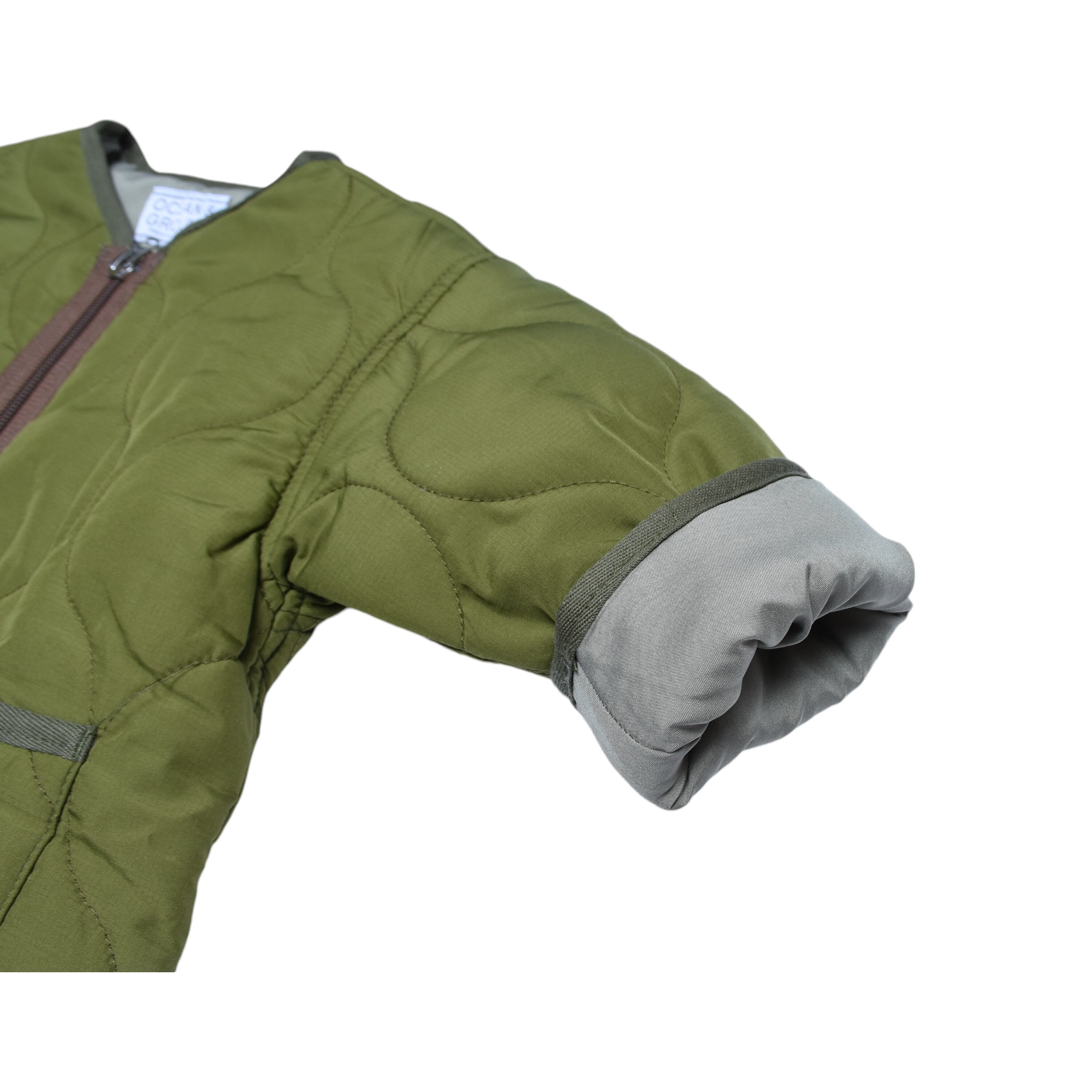 ノーカラーキルトジャケット オリーブ 150-160