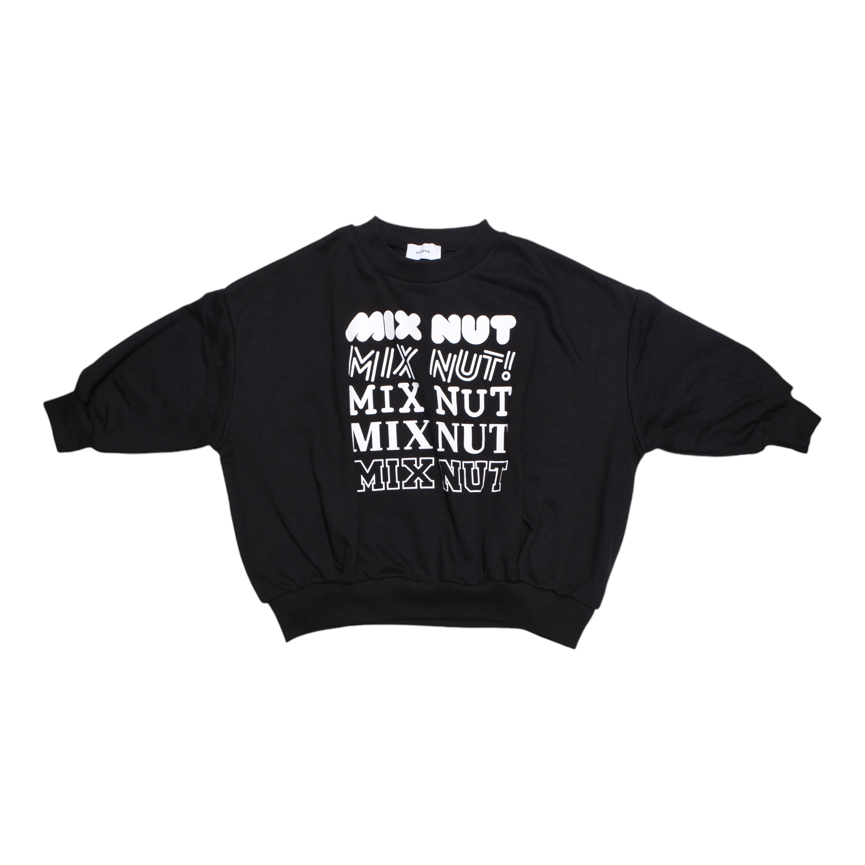 いろんなフォントのMIX NUTがプリントされたトレーナー