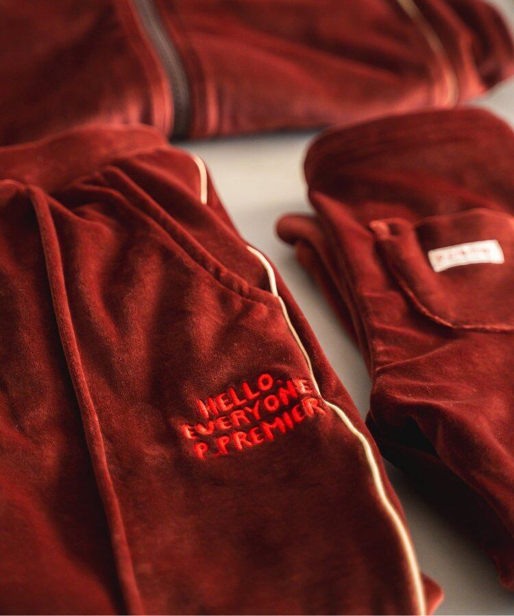 同じ素材のトラックパンツやレギンスパンツとセットアップで着るのもおすすめ。
